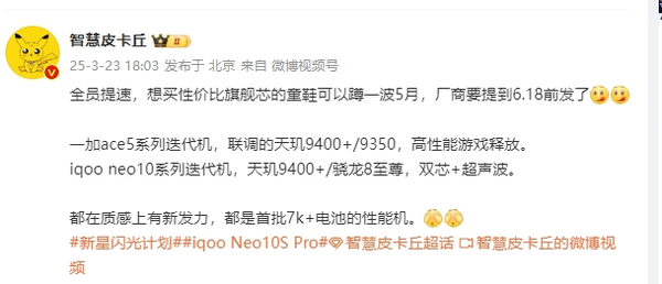 据透露,一加Ace 5系列的迭代机型(可能会被命名为一加Ace 5S)将采用双平台策略,搭载经过联调的天玑9400+和天玑9350芯片,能够在游戏方面实现出色的性能释放。iQOO Neo10系列的迭代机型(或命名为iQOO Neo10s Pro+)同样采用双平台策略,搭载天玑9400+和骁龙8至尊版,并且支持超声波指纹技术。