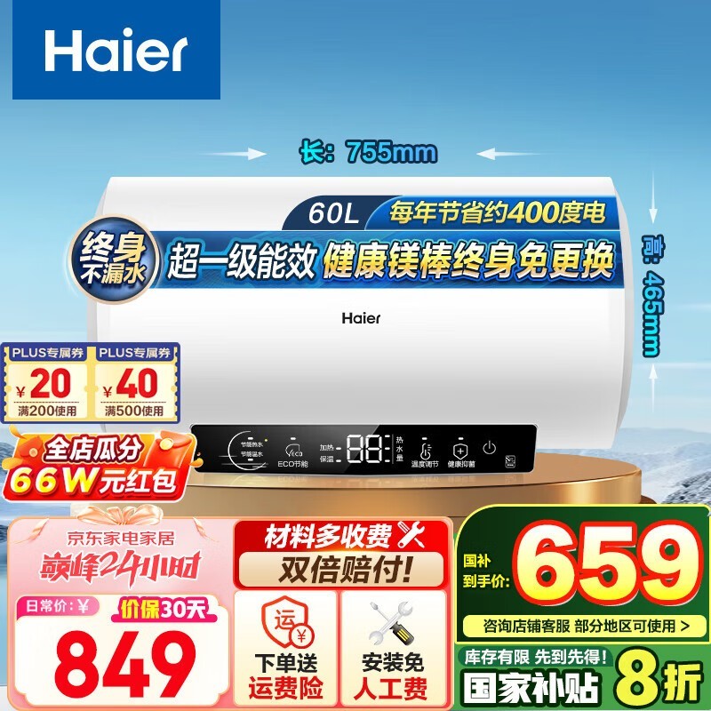 海尔EC6002-R3储水式电热水器60L二级能效促销
