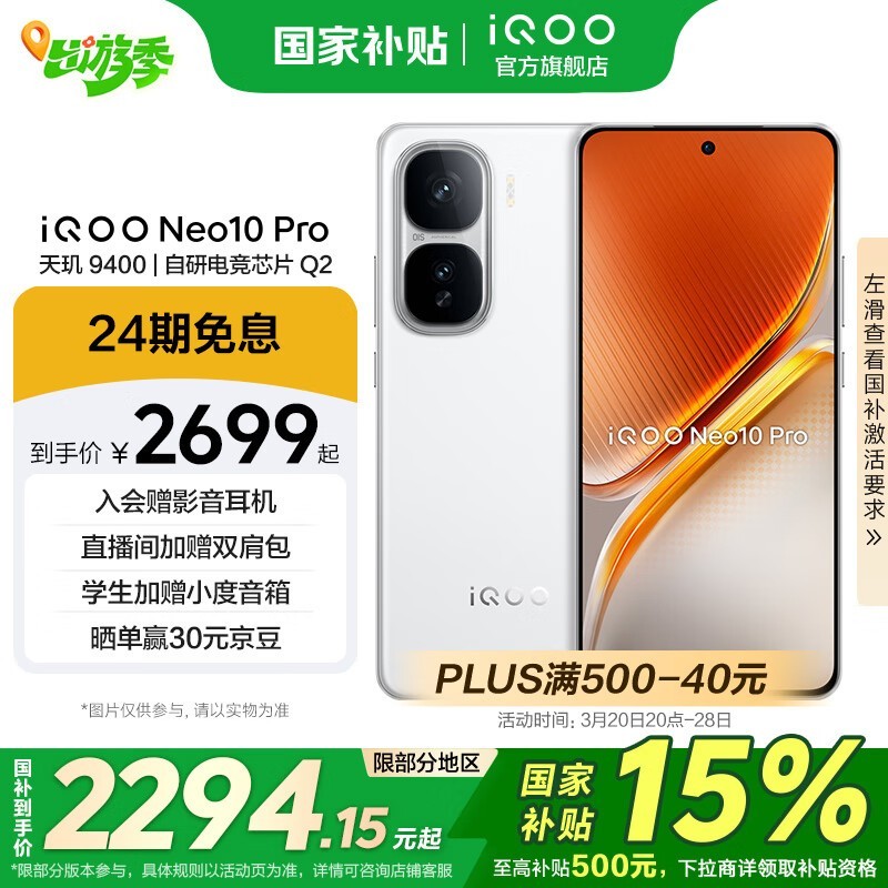 iQOO Neo10 Pro 12GB+256GB驰光白手机超值优惠