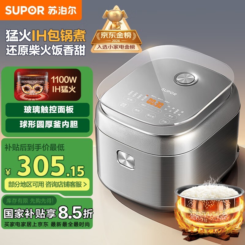 苏泊尔IH电饭煲3L小容量玻璃触控面板科技感强