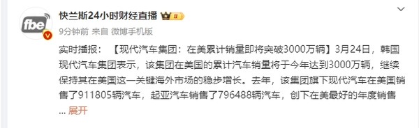 现代起亚在美累计销量即将破3000万辆 韩系车依然能打
