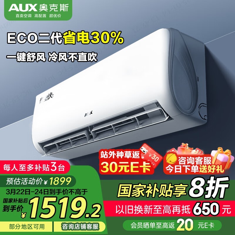 奥克斯大1匹省电侠空调挂机京东促销价1481元