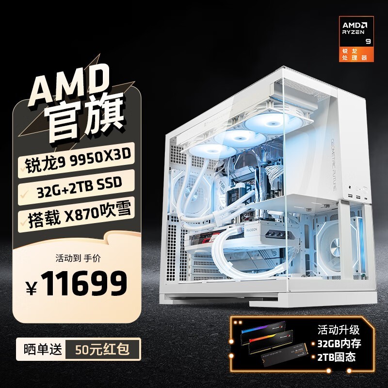 AMD锐龙R9 9950X3D主机京东特惠11649元享游戏巅峰性能