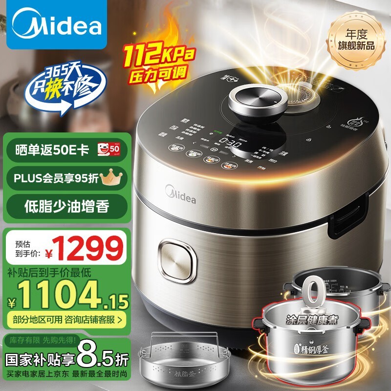 美的低脂猛火锅5L大容量IH技术微孔静排设计
