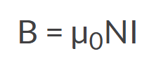 在螺线管线圈中,内部磁场强度B与电流I的关系为: