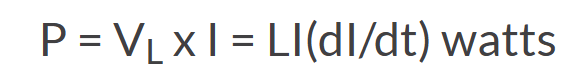 由于电感器场中的能量与最初产生它的电流有关,但与维持它无关。所做的功(以瓦特为单位)以迫使电流通过电感器线圈的公式为: