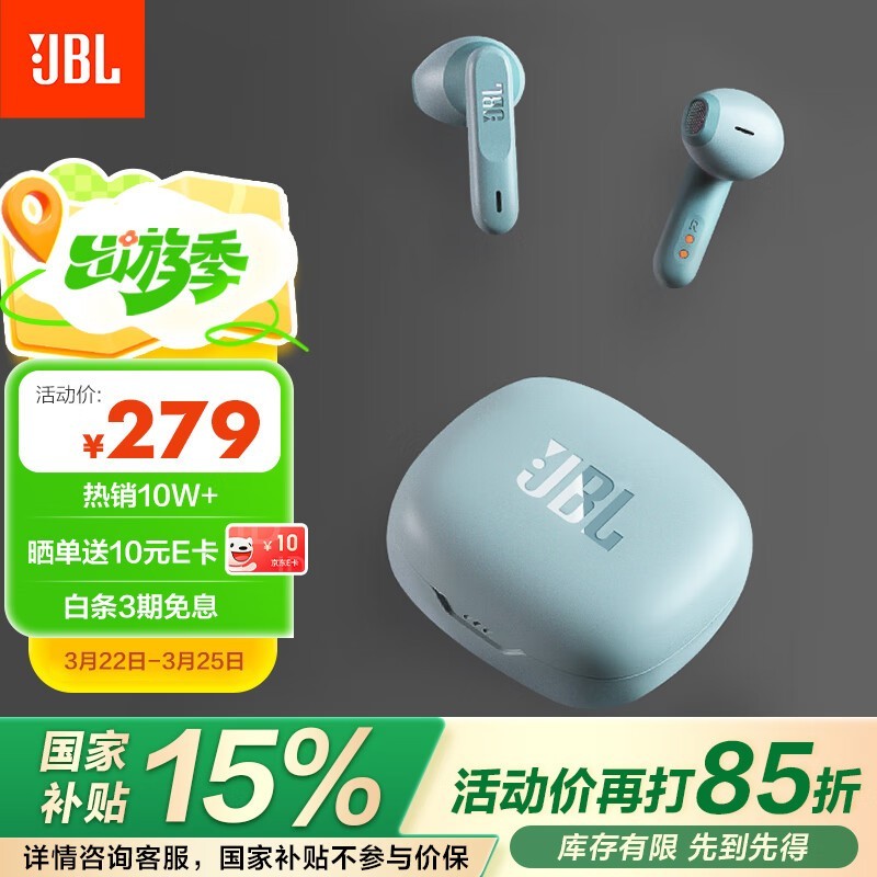 JBL WAVE FLEX 半入耳式真无线降噪蓝牙耳机薄荷绿款