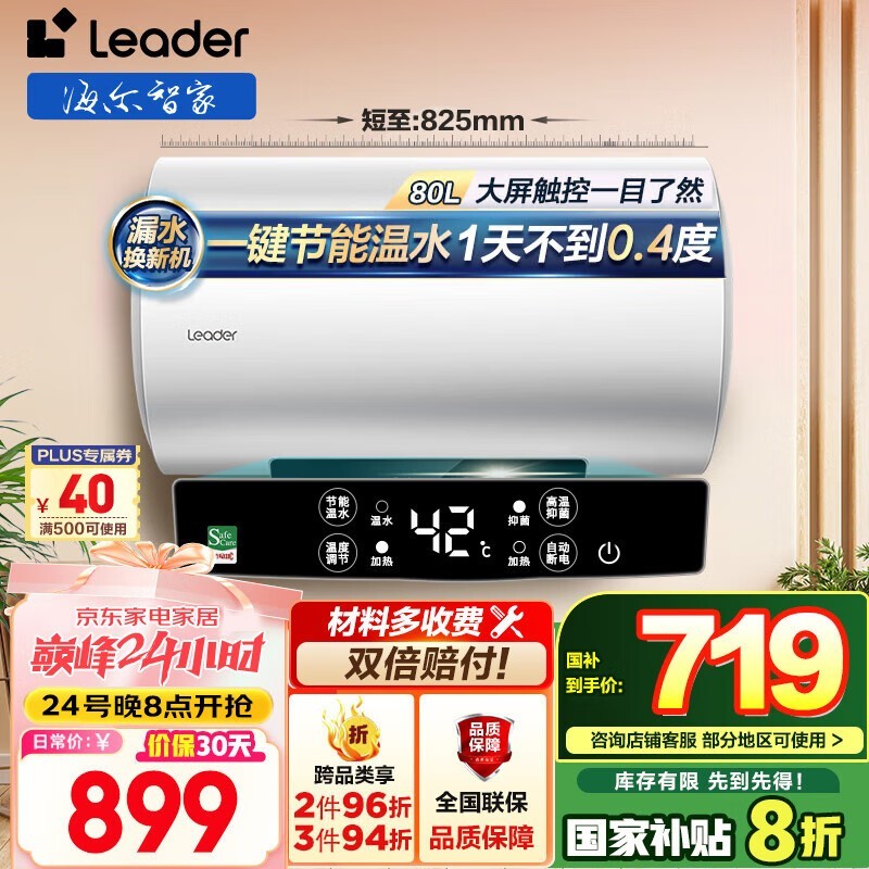 海尔80L热水器大促,2200W加热更快,到手仅647元!