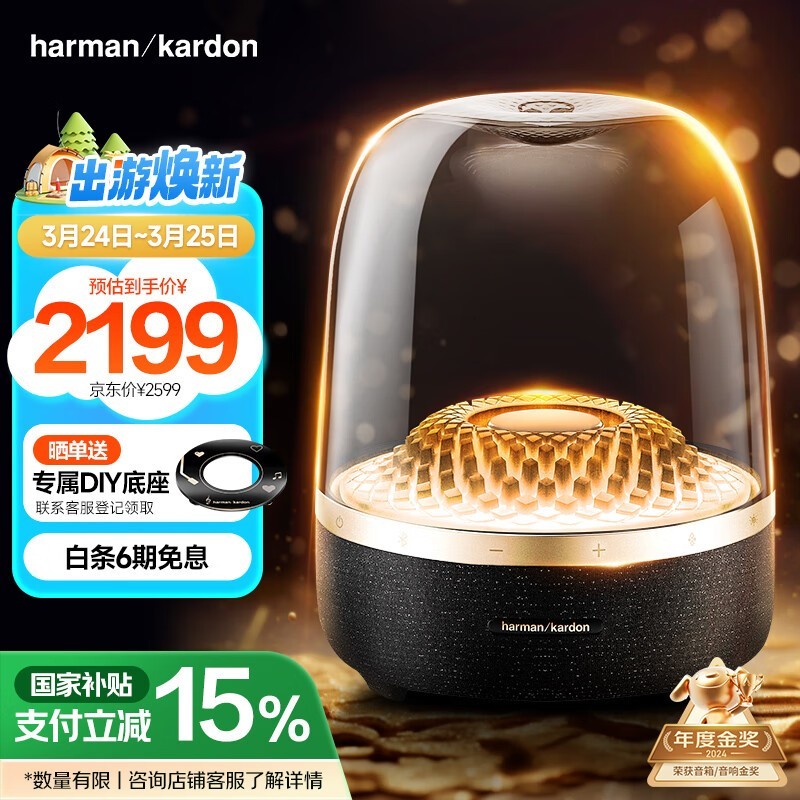 哈曼卡顿Aura Studio4琉璃4代蓝牙音箱黑金典藏版限时优惠