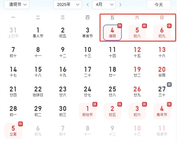 快科技3月24日消息,根据2025年的放假安排,清明节4月4日至4月6日,放假三天,不调休。
