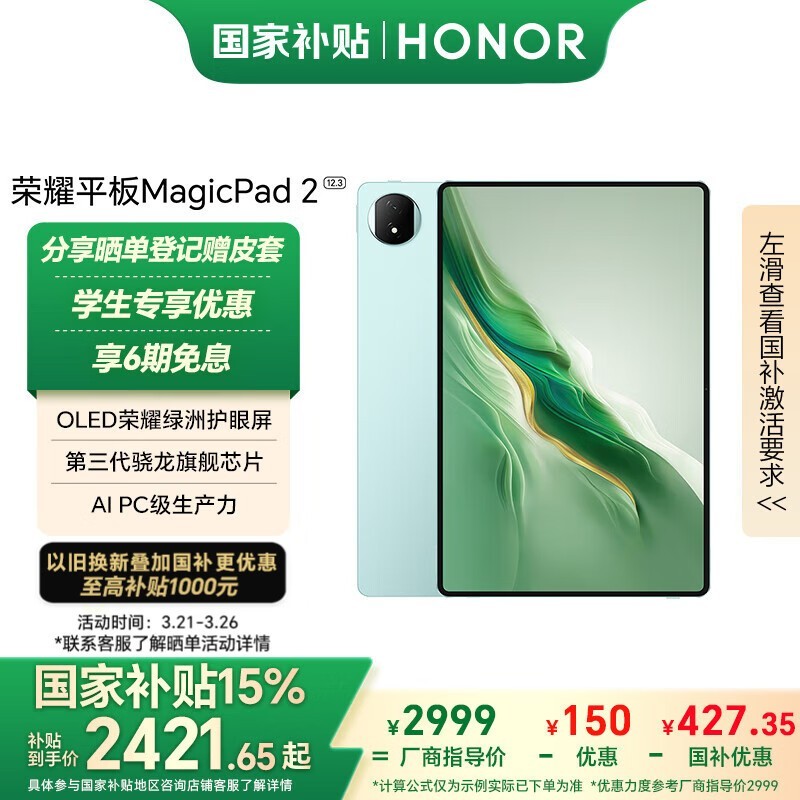 荣耀Magic Pad2平板电脑京东促销低至2421元