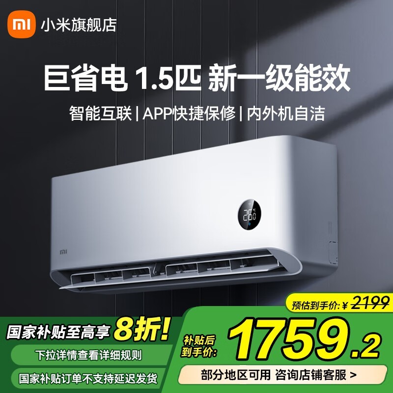 小米1匹巨省电空调,京东到手价1659元