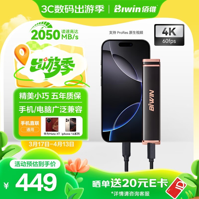 佰维PD2000移动固态硬盘1TB大容量高速存储仅429元