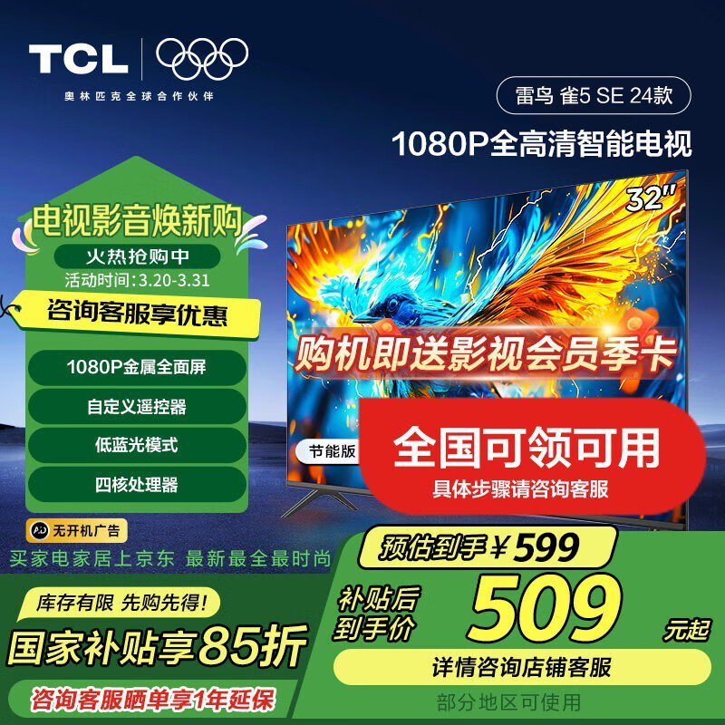 TCL雷鸟雀5SE 32F185C液晶电视促销信息