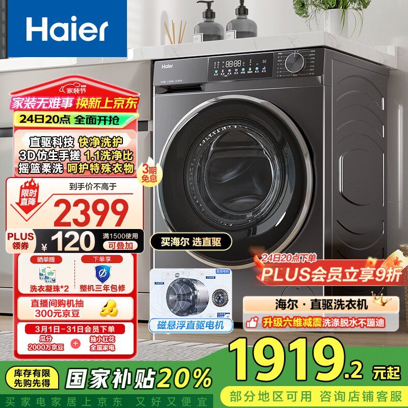 海尔Haier小红花套系10kg滚筒洗衣机促销