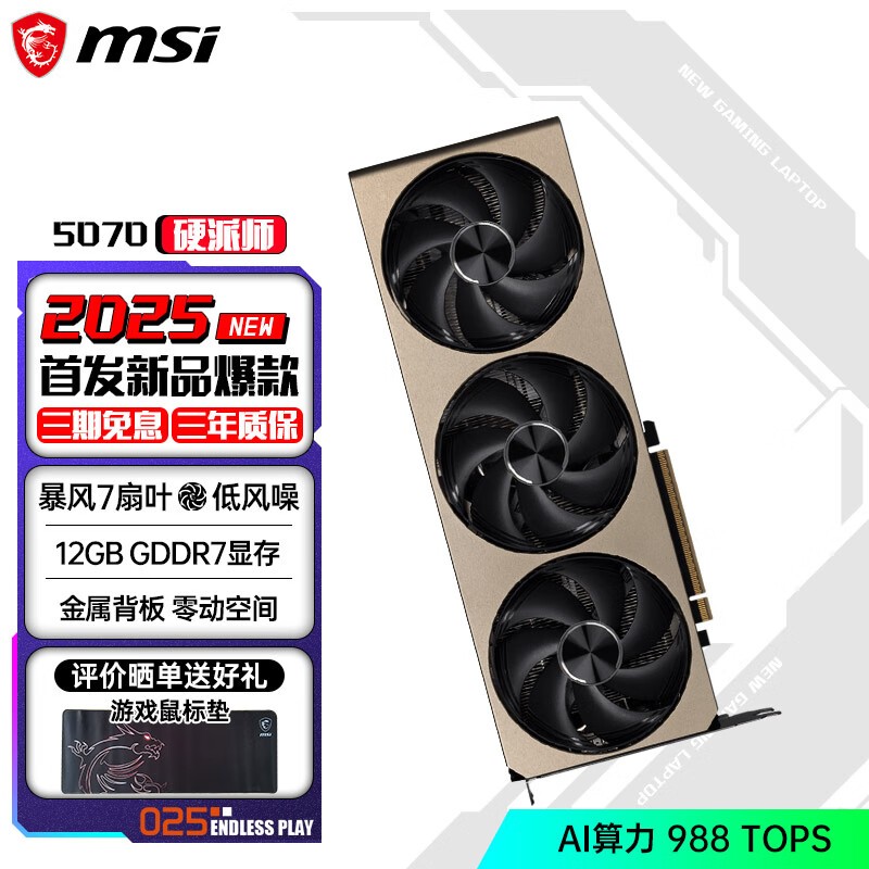 微星RTX 5070 12G游戏显卡优惠价5469元