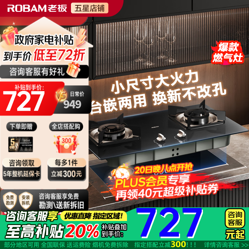 老板JZY - 30B5X嵌入式燃气灶京东促销价727元