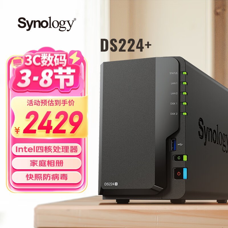 群晖DS224+NAS京东自营优惠价2428元
