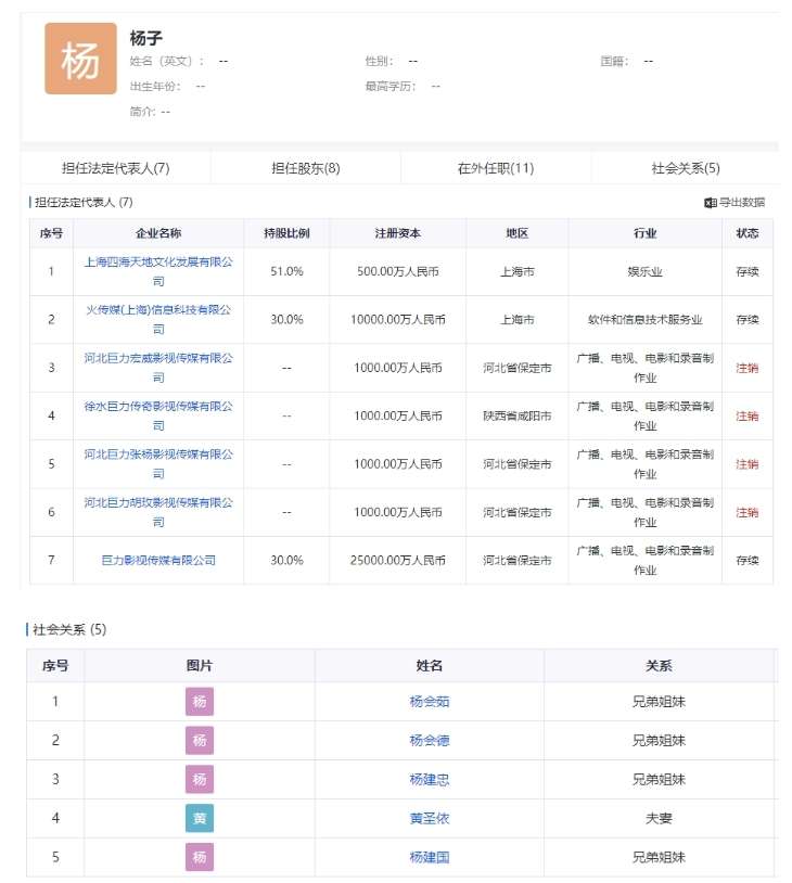 公开资料显示,巨力索具由巨力集团、巨力缆索工程有限公司、杨建忠、杨建国、杨会德、杨子共同出资,杨子是公司的实控人之一。巨力集团持有巨力索具20.03%的股份,而杨子持有巨力集团17%的股份。