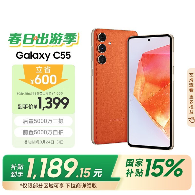 三星Galaxy C55 5G手机8GB+256GB,京东价1189元