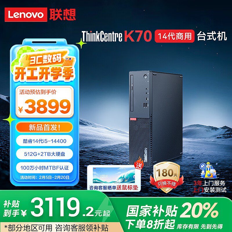 联想K70主机14代i5-14400京东国补立减20%仅3119元