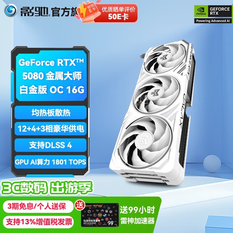 影驰RTX5080金属大师白金版16G显卡京东特惠9999元