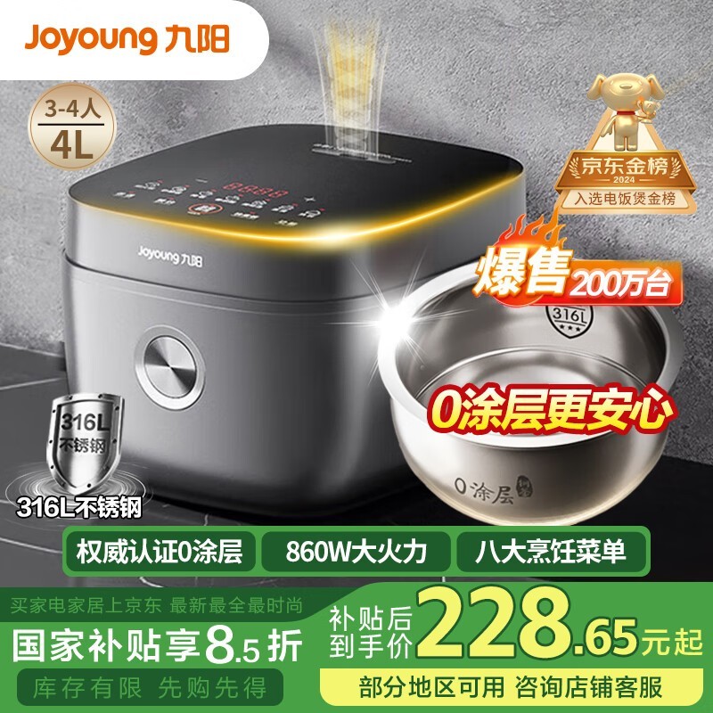 九阳F - 40F316L电饭煲促销,到手价173元
