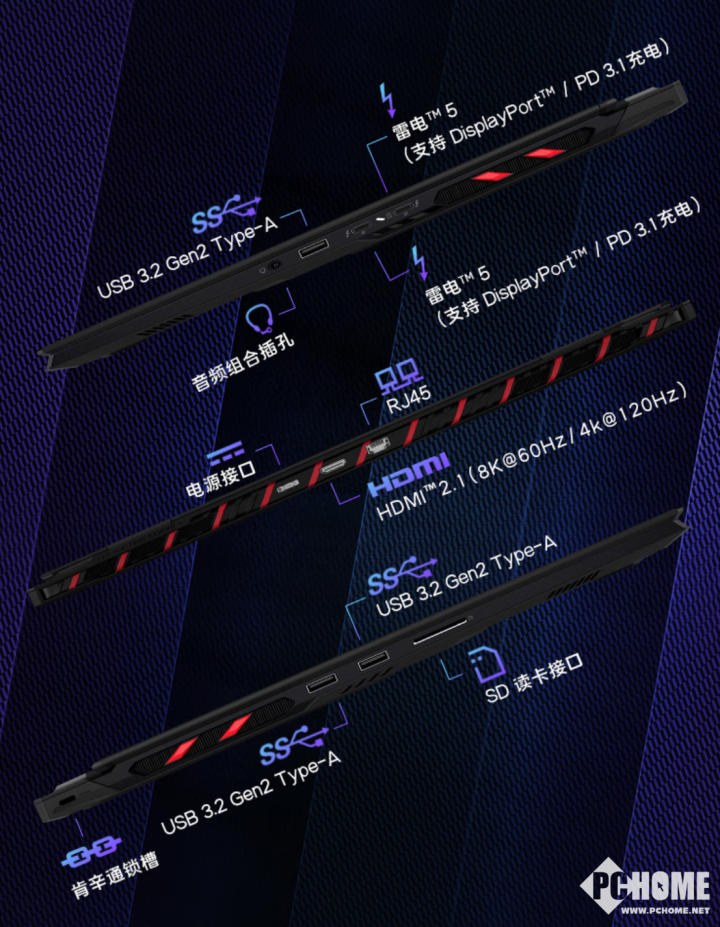 其他方面,泰坦18 Pro AI 2025支持WiFi 7无线网络,配备全尺寸背光键盘和6扬声器环绕音响系统,以及1080P高清摄像头。机身接口提供双雷电5接口(支持PD 3.1充电),3个USB 3.2 Gen 2 Type-A接口,以及1个HDMI 2.1接口和1个RJ45网口。