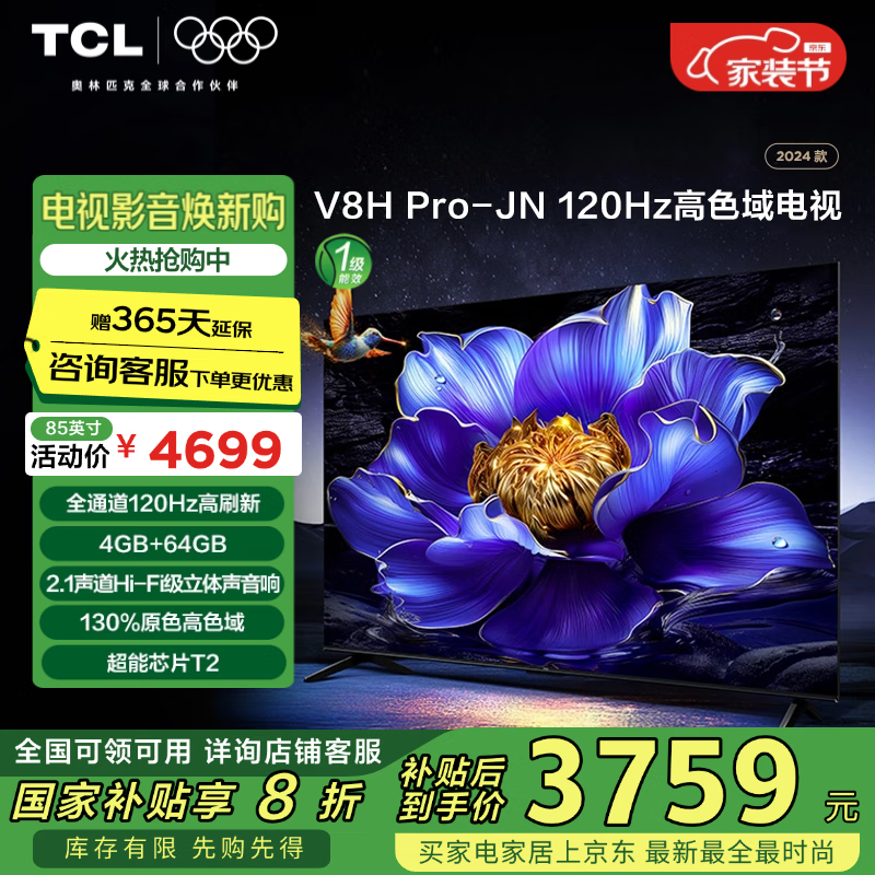 TCL 75V8H Pro - JN 85英寸4K电视京东超值价