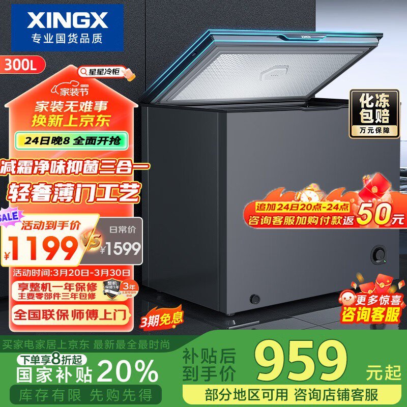 星星300升冰柜减霜净味薄门京东到手仅793元