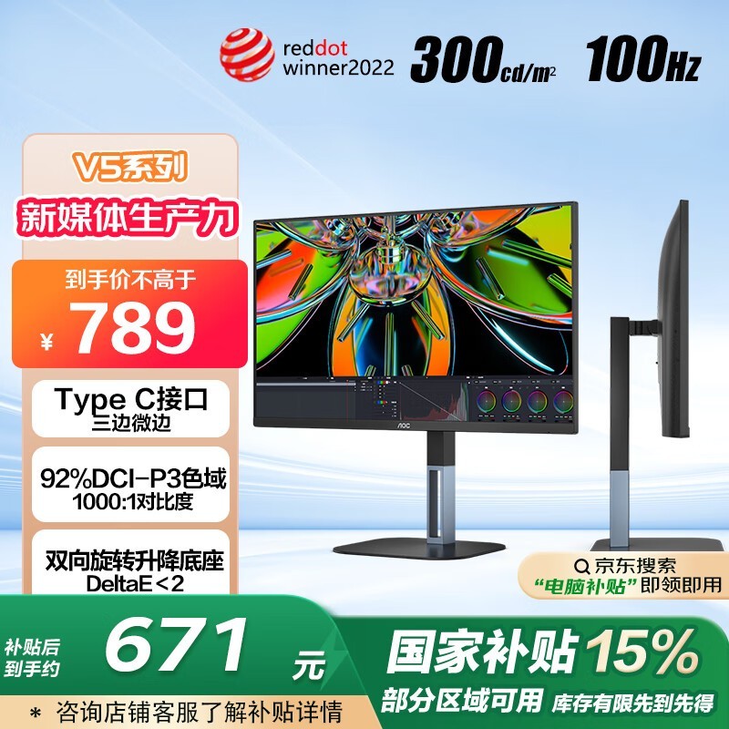 AOC 24V5C2显示器京东活动价667元
