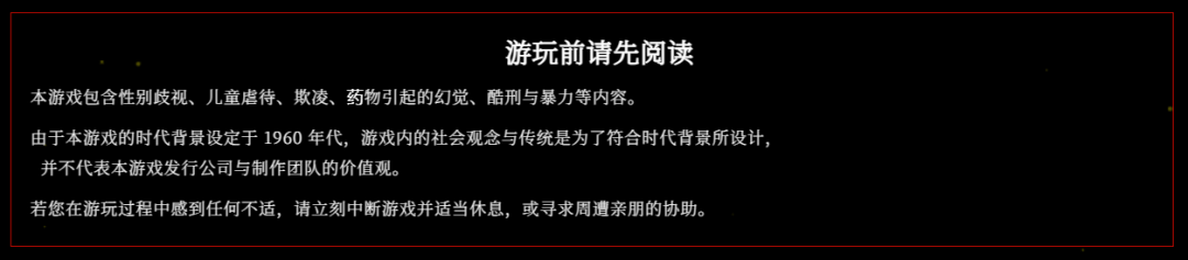 官方网站下方格外醒目的游玩预警,也引发了一些争议,例如觉醒文化、政治正确……不过在多数玩家眼里,这几行文字比起严正警告,更像免责声明,既能避免被卷入争议或事后追责,还更加引起这方面爱好者的特别关注,不乏“那更得尝尝咸淡”的声音。