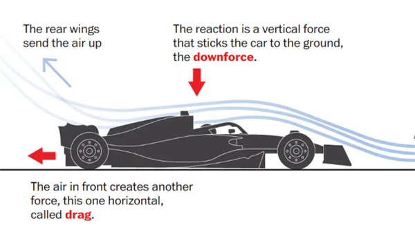 下压力越大,赛车的姿态就越稳定,就可以用越高的车速过弯,在赛道上也就能获得更大的速度和成绩优势。