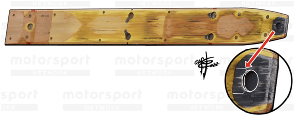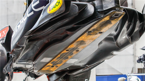 4 号车(汉密尔顿赛车 )的底板部件经测量后,左侧厚度为 8.6 毫米、车身中心线为 8.6 毫米、右侧为 8.5 毫米,低于《技术规则 》第 3.5.9 条所规定的 9 毫米。在听证会过程中,车队代表确认该测量结果正确..... 是车队本身的失误。