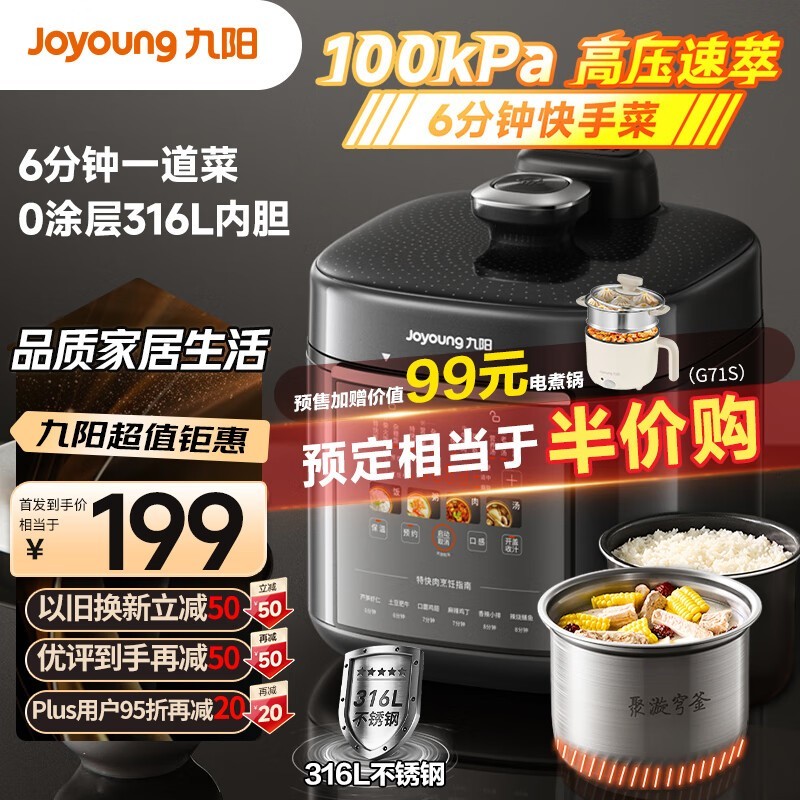 九阳Y-50H160电压力锅京东优惠价239元