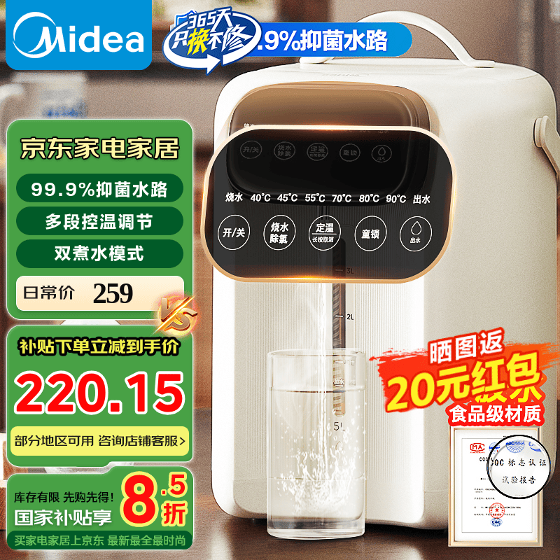 美的电热水瓶SP60-D家用5L大容量仅183元