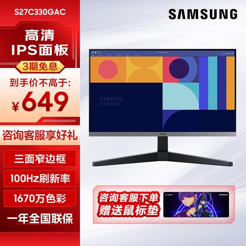 三星27英寸IPS屏显示器 原价999现649