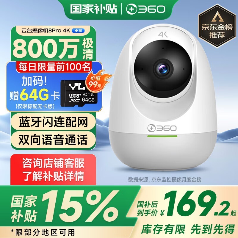 360 8Pro 4K版智能摄像头京东夜黑风高活动价99元