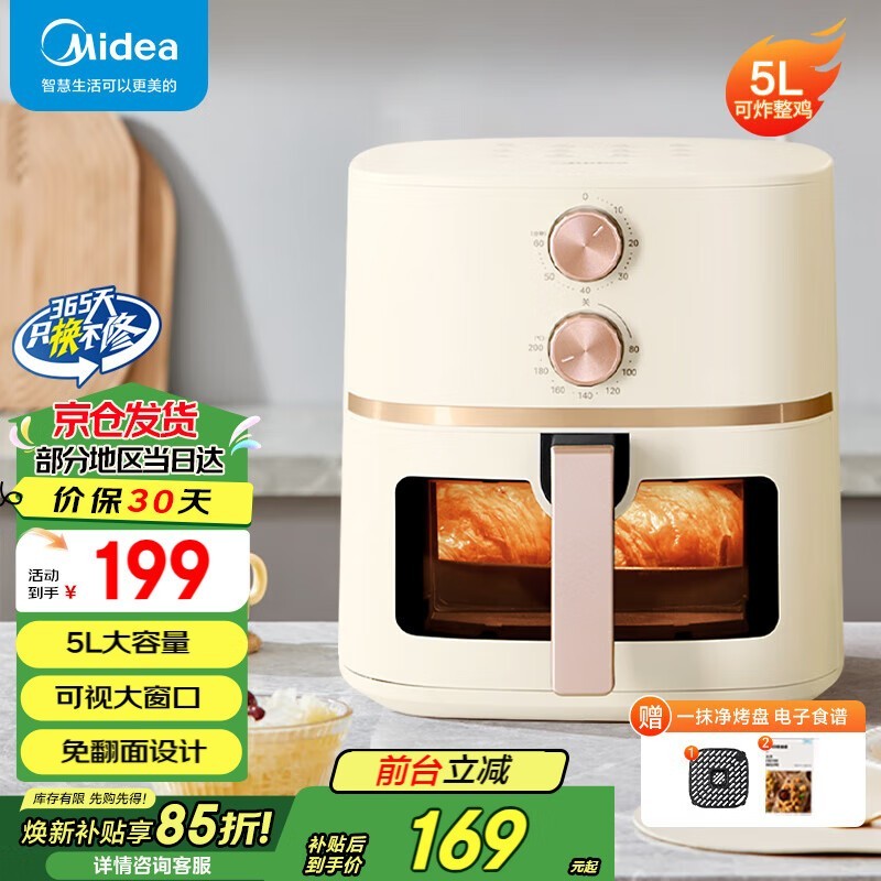 美的MF-KZE5089空气炸锅5L,2代旋风盘设计,169元好价?