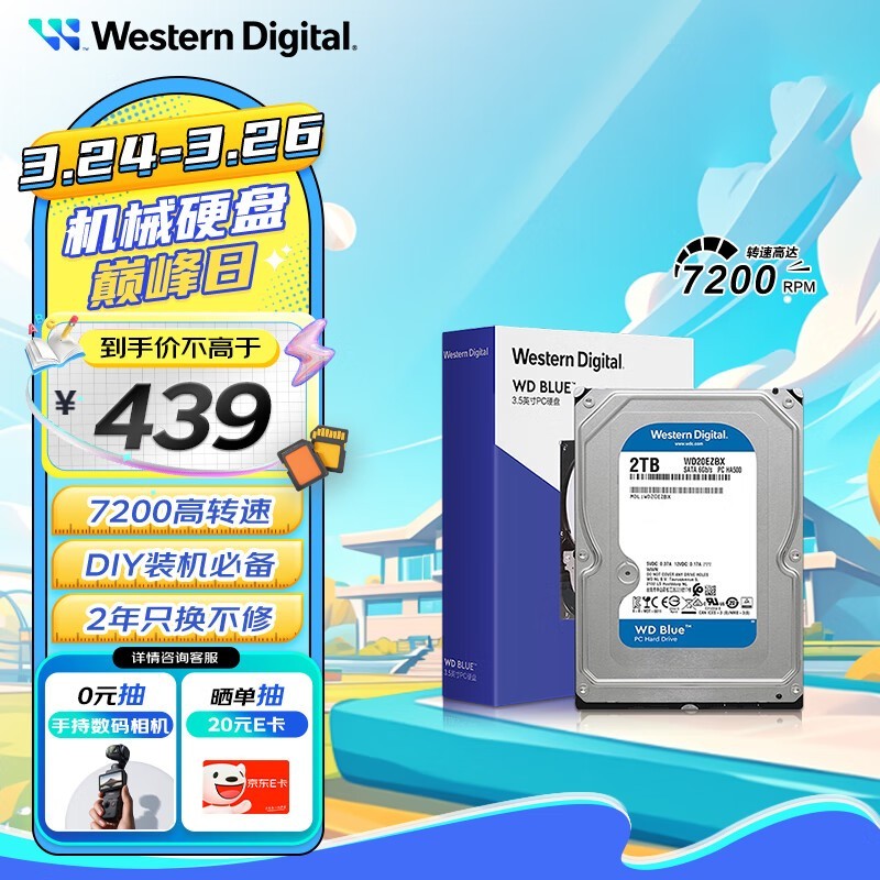 西部数据蓝盘2TB台式机硬盘京东优惠价402元