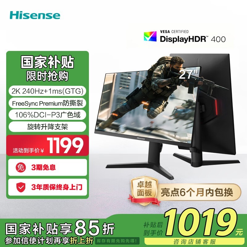 海信Hisense27G6K-PRO显示器促销仅1199元享丝滑体验