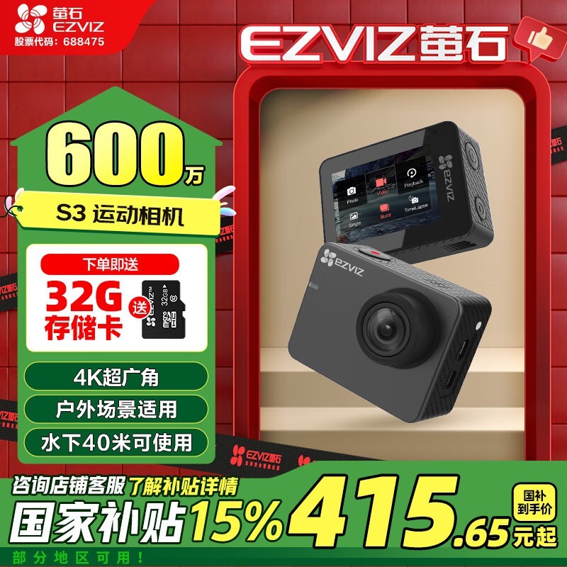 萤石S3运动相机优惠价415元快来买