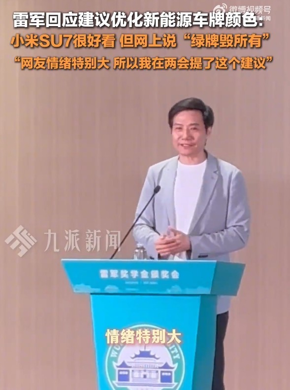 【CNMO科技新闻】近日,小米集团创始人、董事长兼CEO雷军在回应“建议优化新能源车绿牌”时,表示“网友情绪特别大,所以我在两会提了这个建议”。在湖北武汉的活动上,雷军针对新能源车绿牌问题再次发声,指出小米SU7虽然设计美观,但绿色车牌在一定程度上影响了车辆的颜值,“绿牌毁所有”。