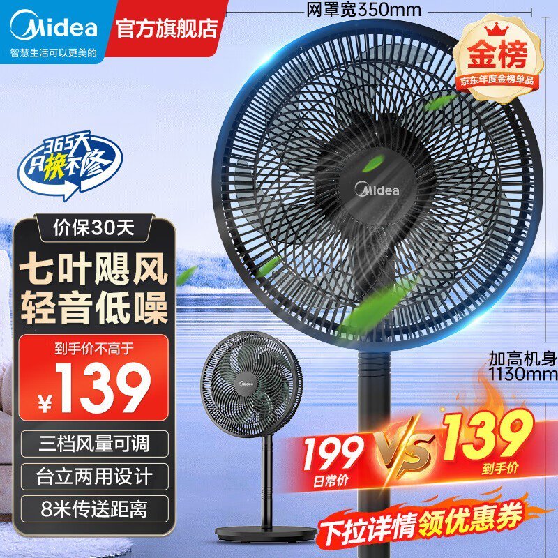美的SAF30AB落地扇静谧黑款强劲风力促销中