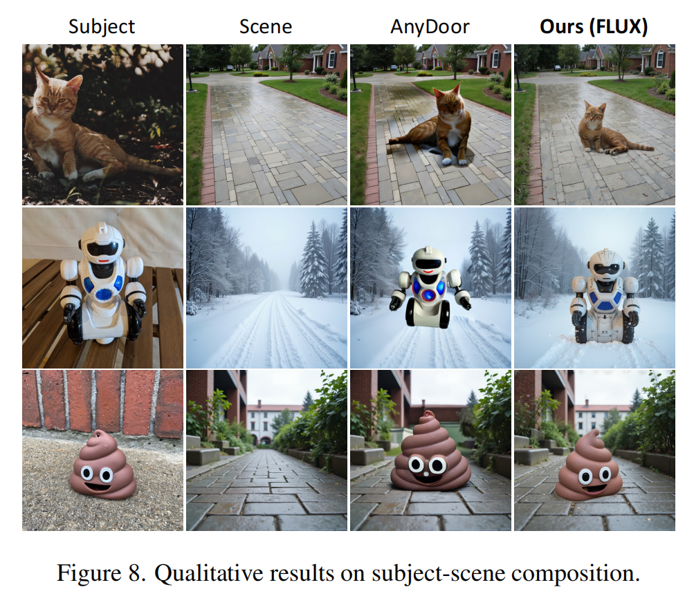 Personalize Anything 能够在多种任务上表现出色,可以对多组物体与场景进行组合,并同时自由控制主体位置,这是以往个性化图像生成模型难以做到的。