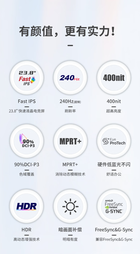而在重要的性能参数上,优派VX24G10全系支持240Hz刷新率与1ms响应时间的黄金组合,确保玩家在《CS2》《三角洲行动》等FPS竞技游戏中画面丝滑无拖影。而400尼特亮度与90%DCI-P3色域覆盖,既满足HDR游戏场景的明暗细节呈现,也兼顾创意设计工作的色彩准确性。另外这次底座还升级到了新型三角镂空金属底座,将结构美学与桌面空间优化完美统一,较传统电竞显示器节省更多的桌面占用面积。