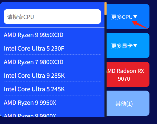 点击更多CPU,会显示CPU列表,可以在上方搜索框搜索自己的CPU型号,也可以下拉找到自己的CPU并选择。