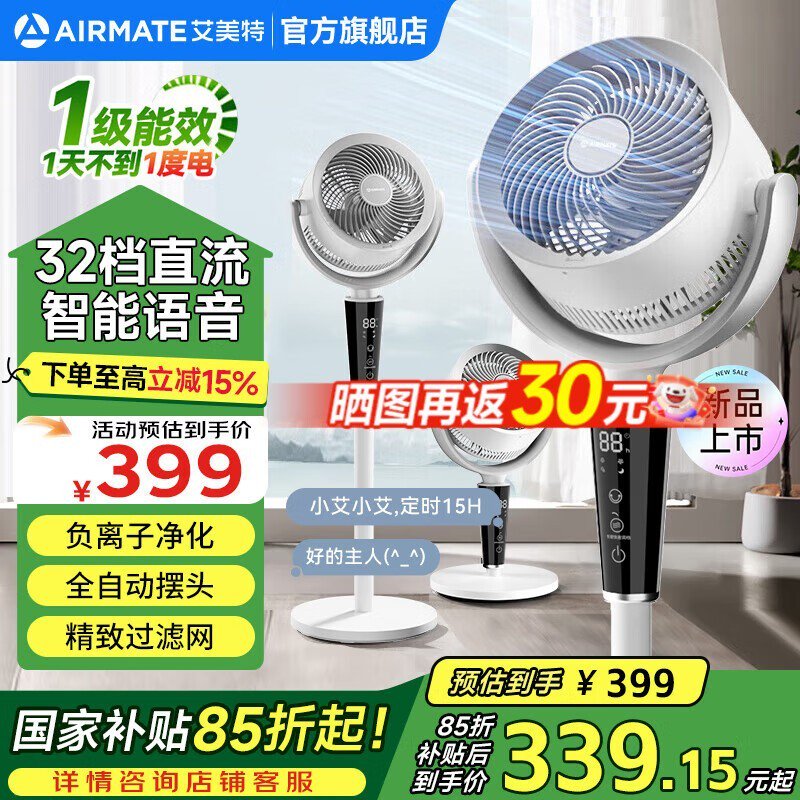 艾美特智能语音空气循环扇仅需275元