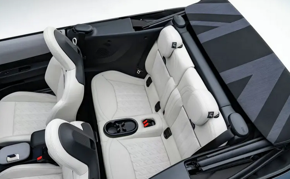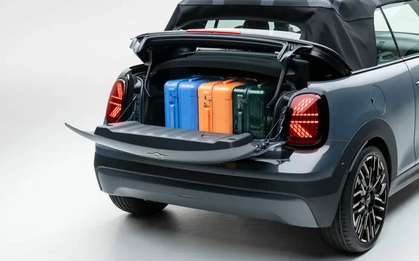 尾门承袭经典Mini设计,可放平作为尾凳,软顶关闭时,后备箱容量从160升扩容至215升。