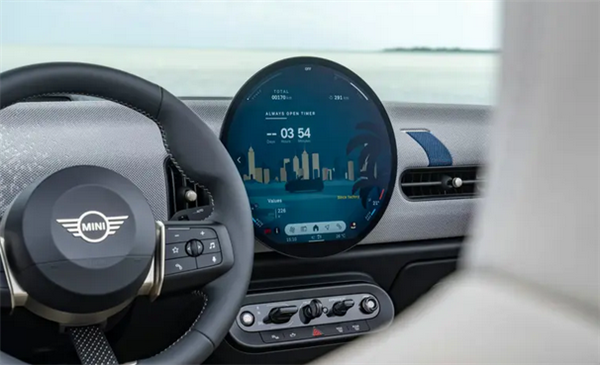 车内圆形OLED中控屏保留了“敞篷计时器”功能,记录敞篷时间和天气信息。